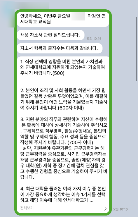 연세대학교 교직원 자기소개서 대필 진행, 자소서도 전문가의 도움을 받으면 확실하겠죠? 안녕하세요! 10년 이상 자기소개서 컨설팅 ...