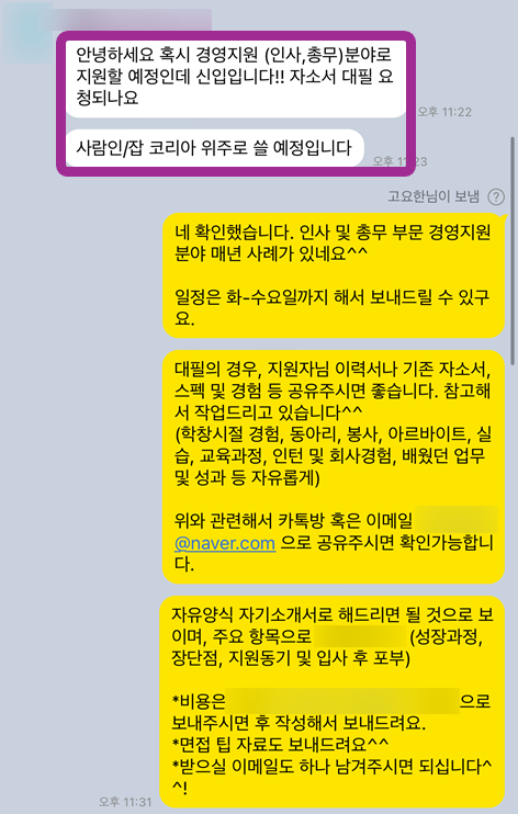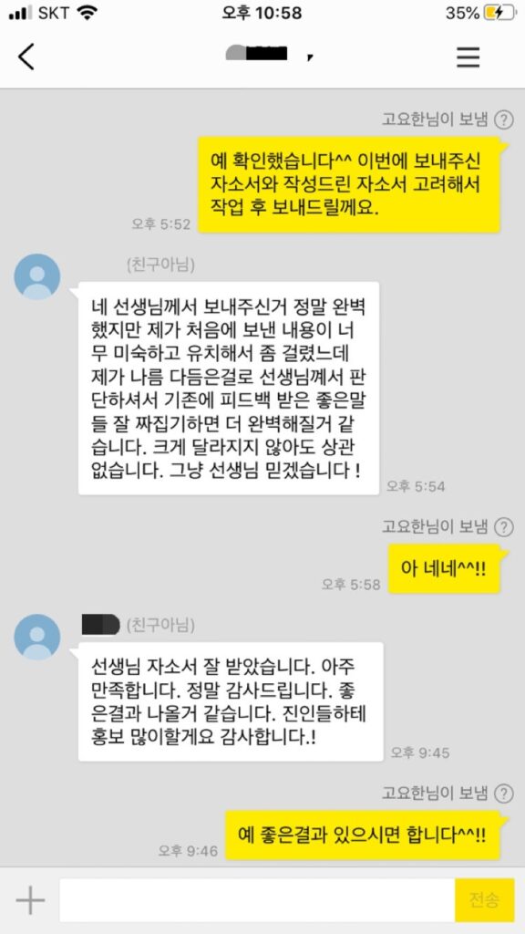 군무원 합격 자소서 첨삭대행 후기 안녕하세요! 10년 이상 자기소개서 컨설팅 경험을 가진, 자칭 ‘자소서 해결사’입니다. ...