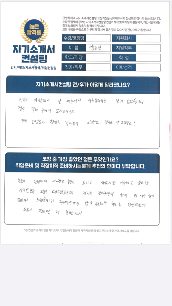 READ MORE우정청 자소서 첨삭대필 합격후기
