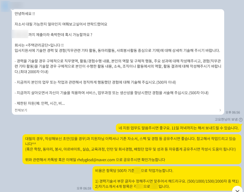 안녕하세요! 10년 이상 자기소개서 컨설팅 경험을 가진, 대기업 출신 자소서 컨설턴트입니다. 주택관리공단 합격 자소서, 제가 ...