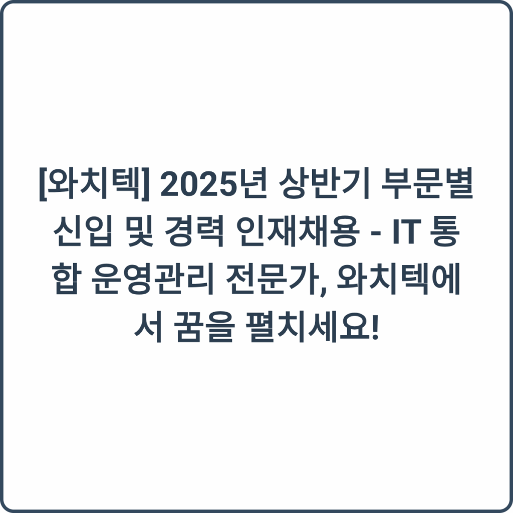 READ MORE[와치텍] 2025년 상반기 부문별 신입 및 경력 인재채용 – IT 통합 운영관리 전문가, 와치텍에서 꿈을 펼치세요!