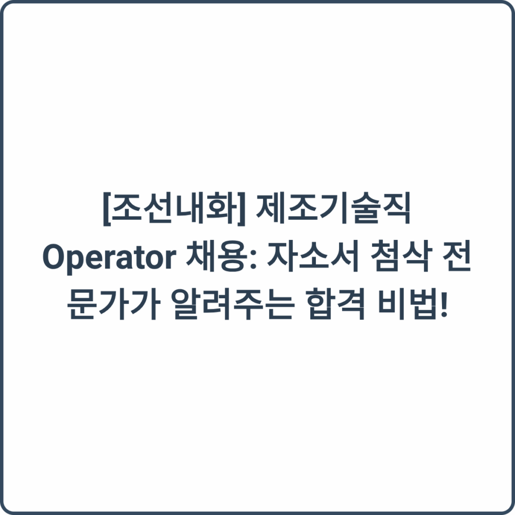 READ MORE[조선내화] 제조기술직 Operator 채용: 자소서 첨삭 전문가가 알려주는 합격 비법!