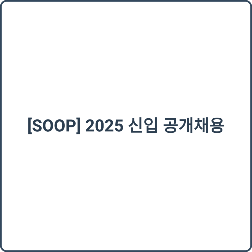 안녕하세요! 오늘은 콘텐츠 플랫폼의 혁신을 이끄는 SOOP의 2025 신입 공개채용 소식을 전해드리겠습니다. SOOP은 여행, 음악, ...