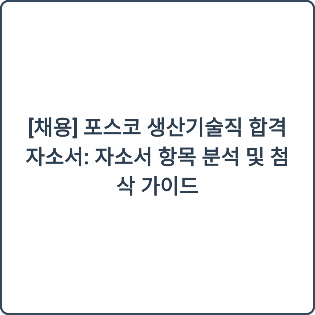 목차 포스코 생산기술직 채용정보 소개 포스코 생산기술직 자소서 작성 팁과 후기 자기소개서 첨삭 가이드: 합격을 ...