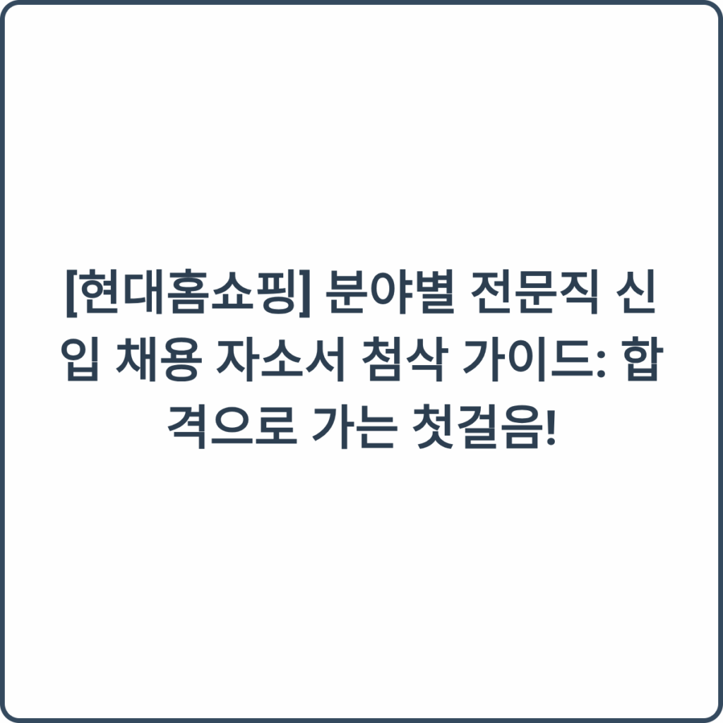 READ MORE[현대홈쇼핑] 분야별 전문직 신입 채용 자소서 첨삭 가이드: 합격으로 가는 첫걸음!