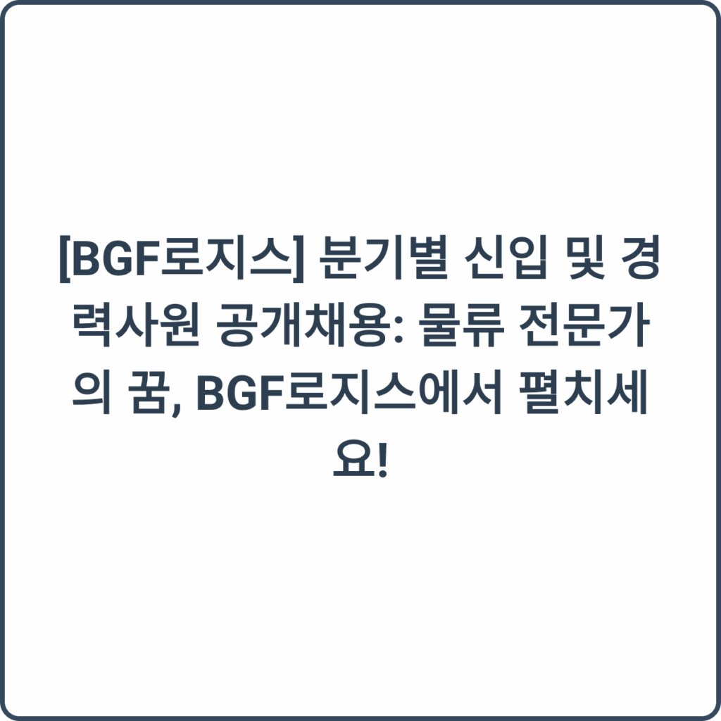 안녕하세요! 오늘은 물류 전문가를 꿈꾸는 분들을 위한 희소식, BGF로지스의 분기별 신입 및 경력사원 공개채용 소식을 ...