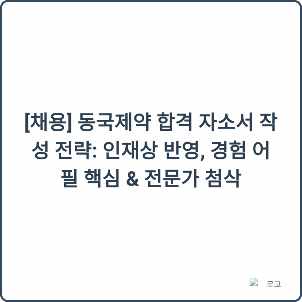 READ MORE[채용] 동국제약 합격 자소서 작성 전략: 인재상 반영, 경험 어필 핵심 & 전문가 첨삭