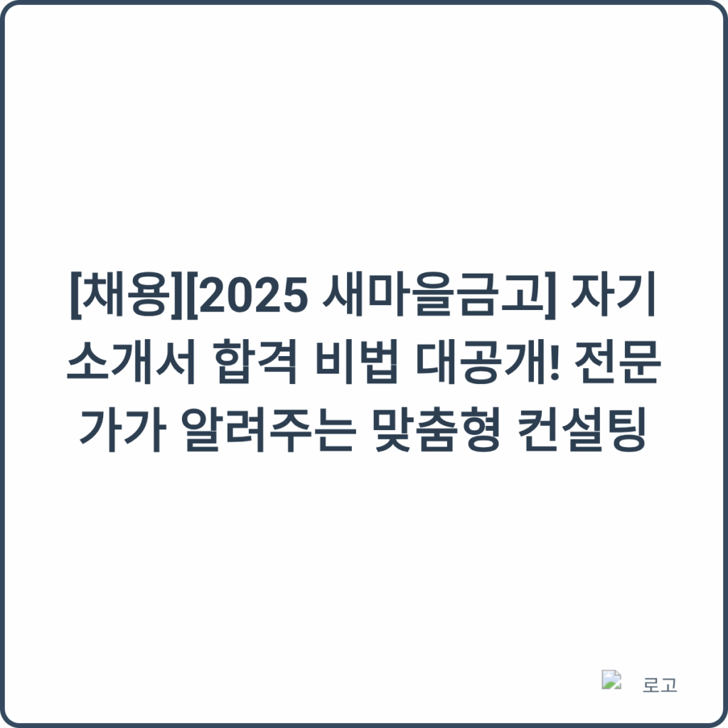 READ MORE[채용][2025 새마을금고] 자기소개서 합격 비법 대공개! 전문가가 알려주는 맞춤형 컨설팅