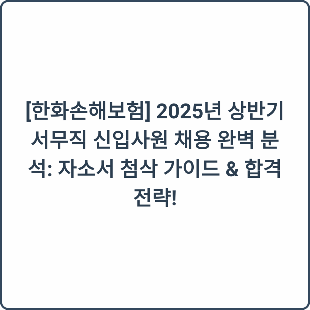 READ MORE[한화손해보험] 2025년 상반기 서무직 신입사원 채용 완벽 분석: 자소서 첨삭 가이드 & 합격 전략!