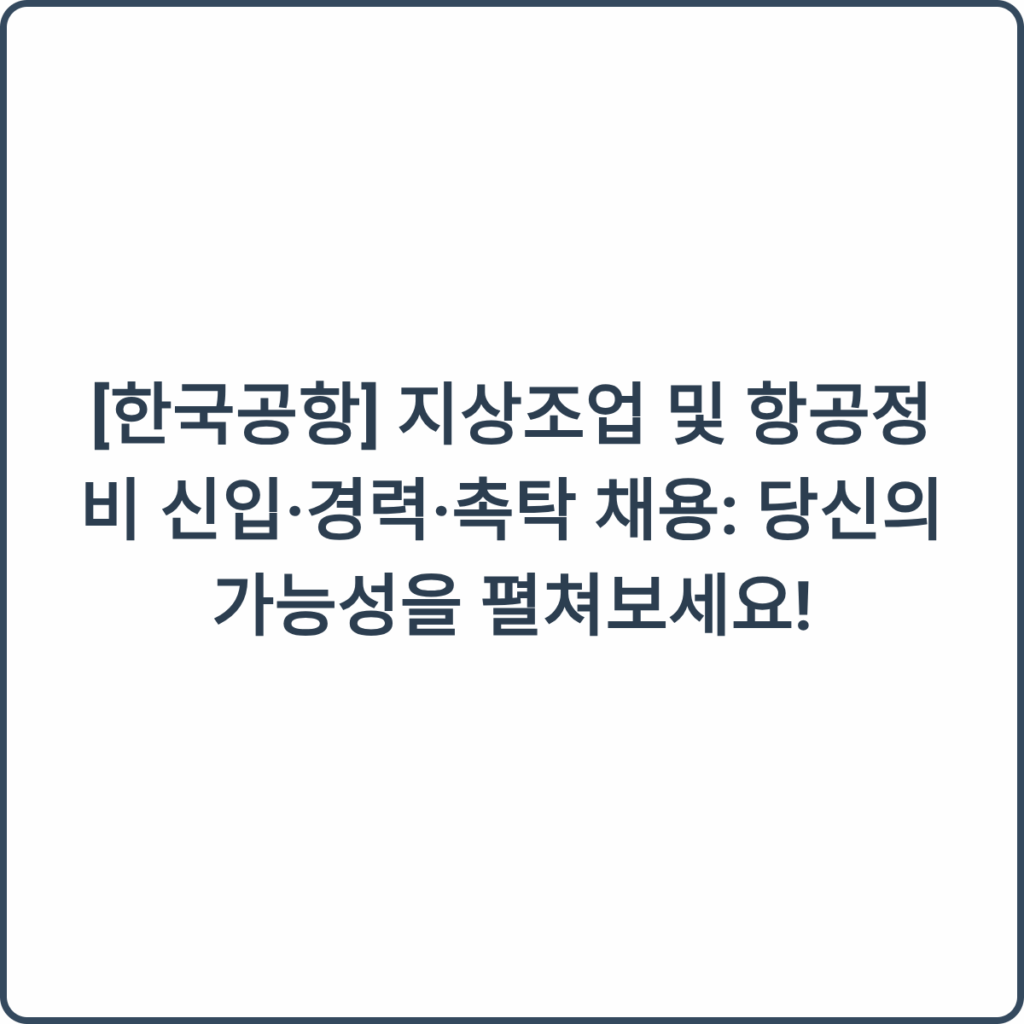 READ MORE[한국공항] 지상조업 및 항공정비 신입·경력·촉탁 채용: 당신의 가능성을 펼쳐보세요!